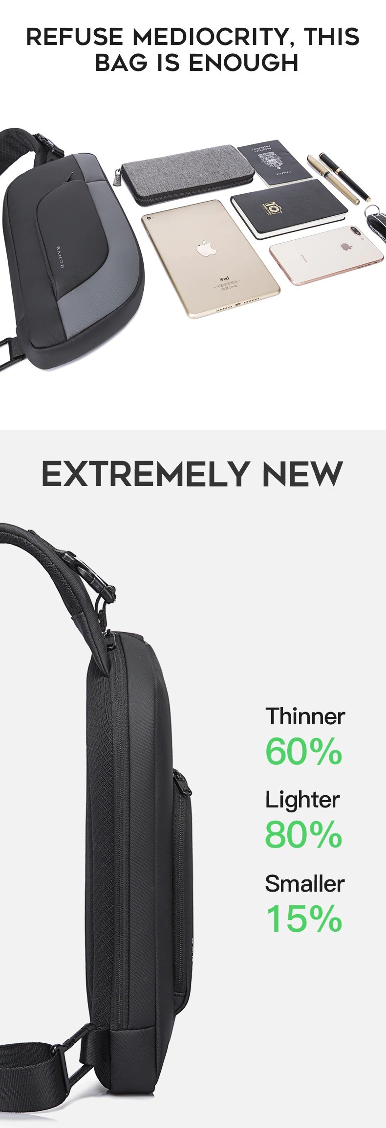Túi đeo chéo messenger nam nữ cao cấp chống nước thời trang Bange BG-7312