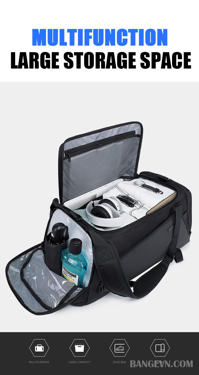 Túi kiêm balo du lịch thể thao đa năng chống thấm nước Bange BG-1917 sở hữu kiểu dáng hiện đại, thanh lịch cùng nhiều ngăn chứa tiện lợi, sức chứa lớn dùng cho các chuyến đi du lịch, công tác, tập luyện thể thao.